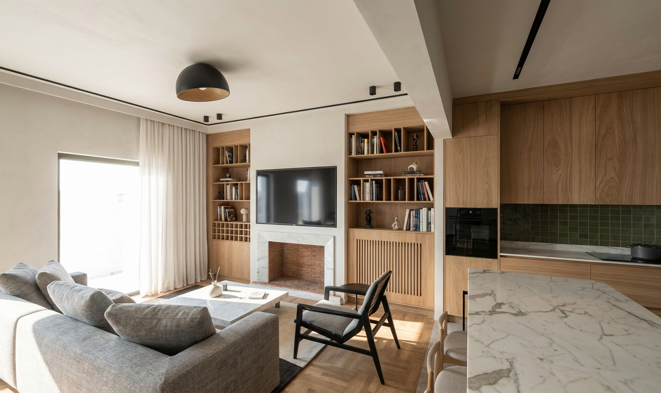 remove the black linear track on the left ceiling it is a plasterboard frame with the same color of walls at the right ceiling instead of the black track install a linear led