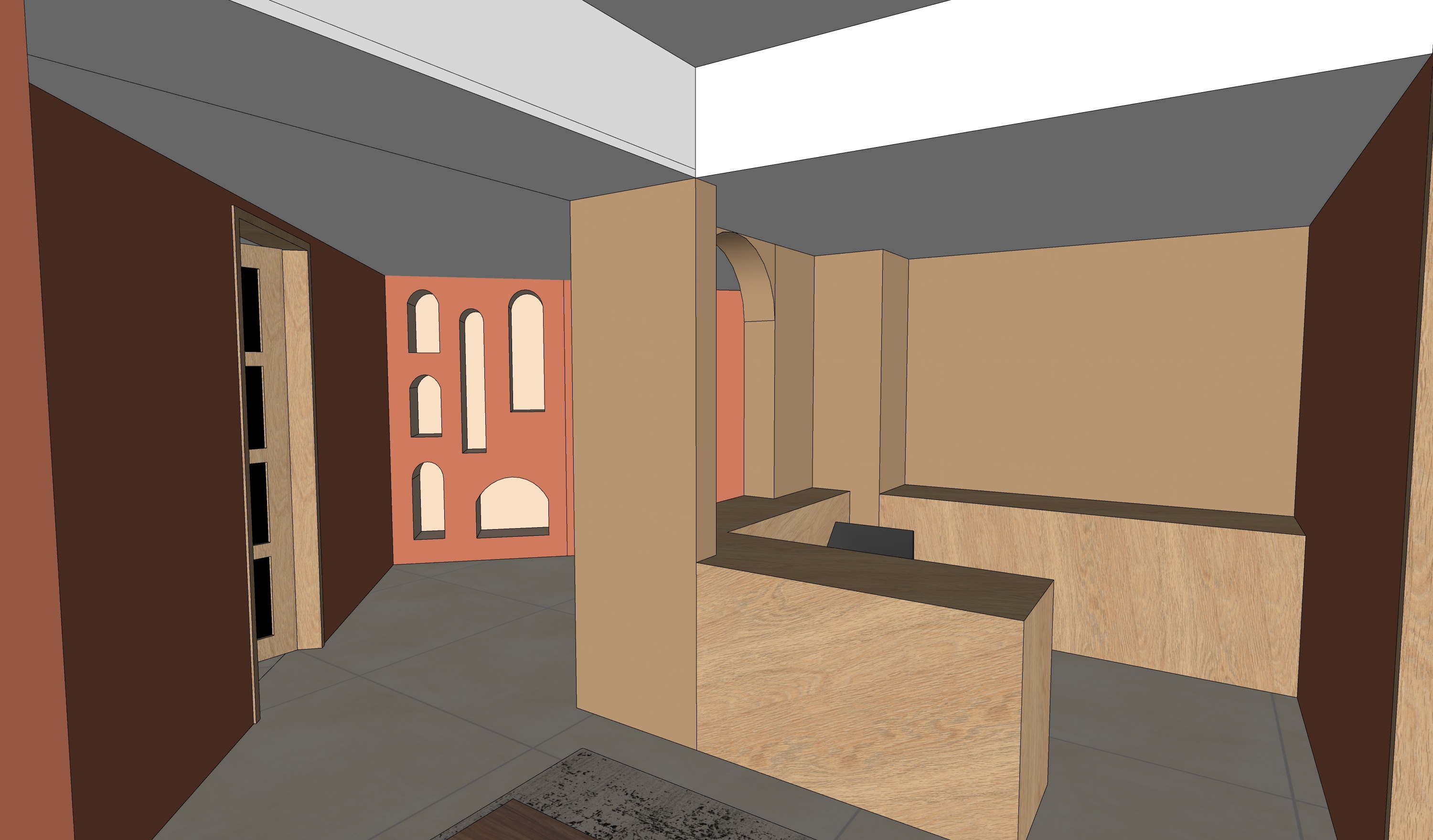 j aimerais que tu donnes vie cette perspective int rieure d un bureau d acceuil les niches dans le fond de l image doivent tre r tro clair es