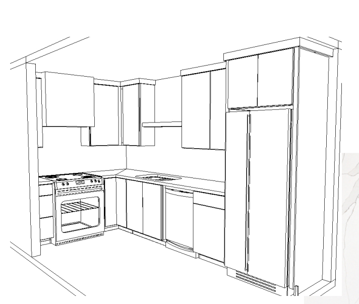 modernist interior shot render this in 3d with harbor color upper cabinets and maple rye base cabinets architecture