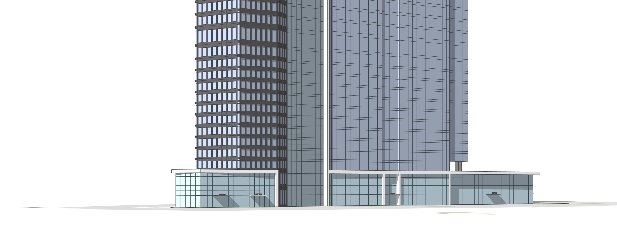 just a sky background add retail at base of tower maintain massing make daytime remove sunset
