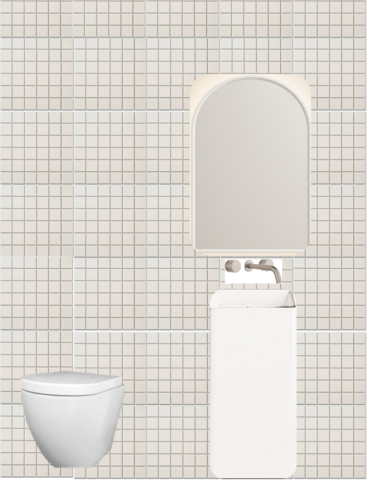 modernist interior shot use the finishes selected to create an improved powder room render the basin is immediate when you walk in but the toilet and wall is 300mm behind the wall the basin is on architecture