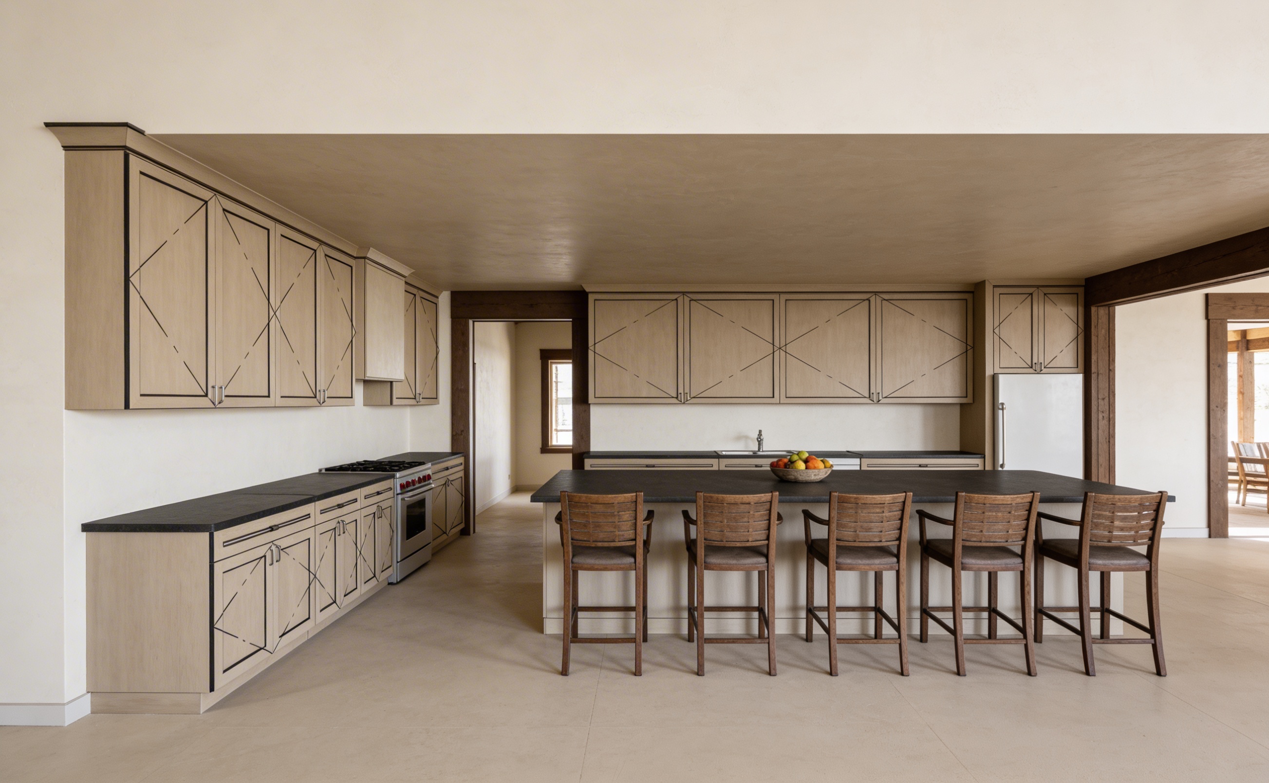 add 5 chairs make upper cabinets more interesting add people add details like a fruit bowl