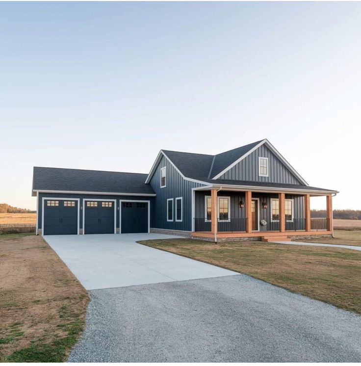 modernist exterior shot a modern barn style house with large windows set in a serene landscape the house features dark wood siding with a deep navy blue roof and warm beige trim the deck has a natural wood finish complementing the subtle earth tones of the structure surrounding the house are lush green trees under a bright blue sky with soft white clouds the atmosphere is tranquil and inviting capturing the essence of a peaceful countryside retreat architecture