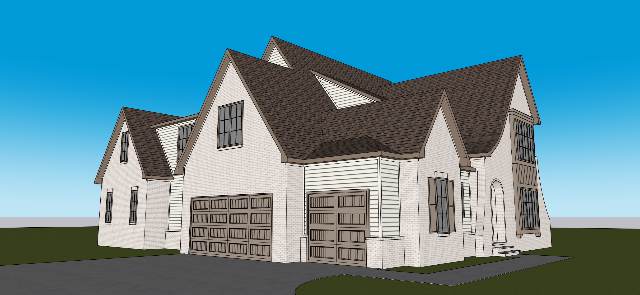 maintain colors and design trees in background add landscaping make realistic