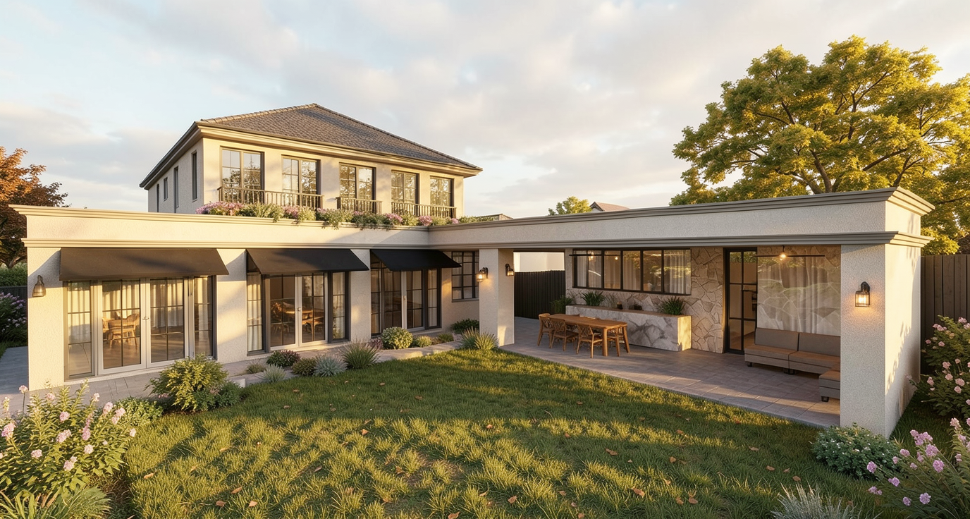 change the exterior navy blue to a medium beige greige color