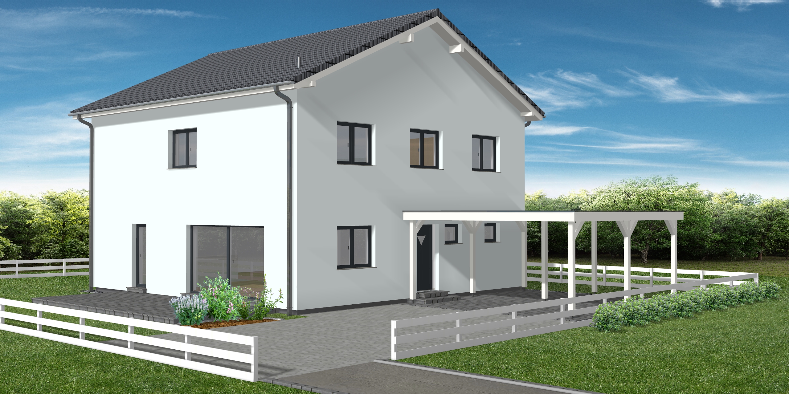 erstelle ein fotorealistisches bild belasse die form des hauses exakt gleich