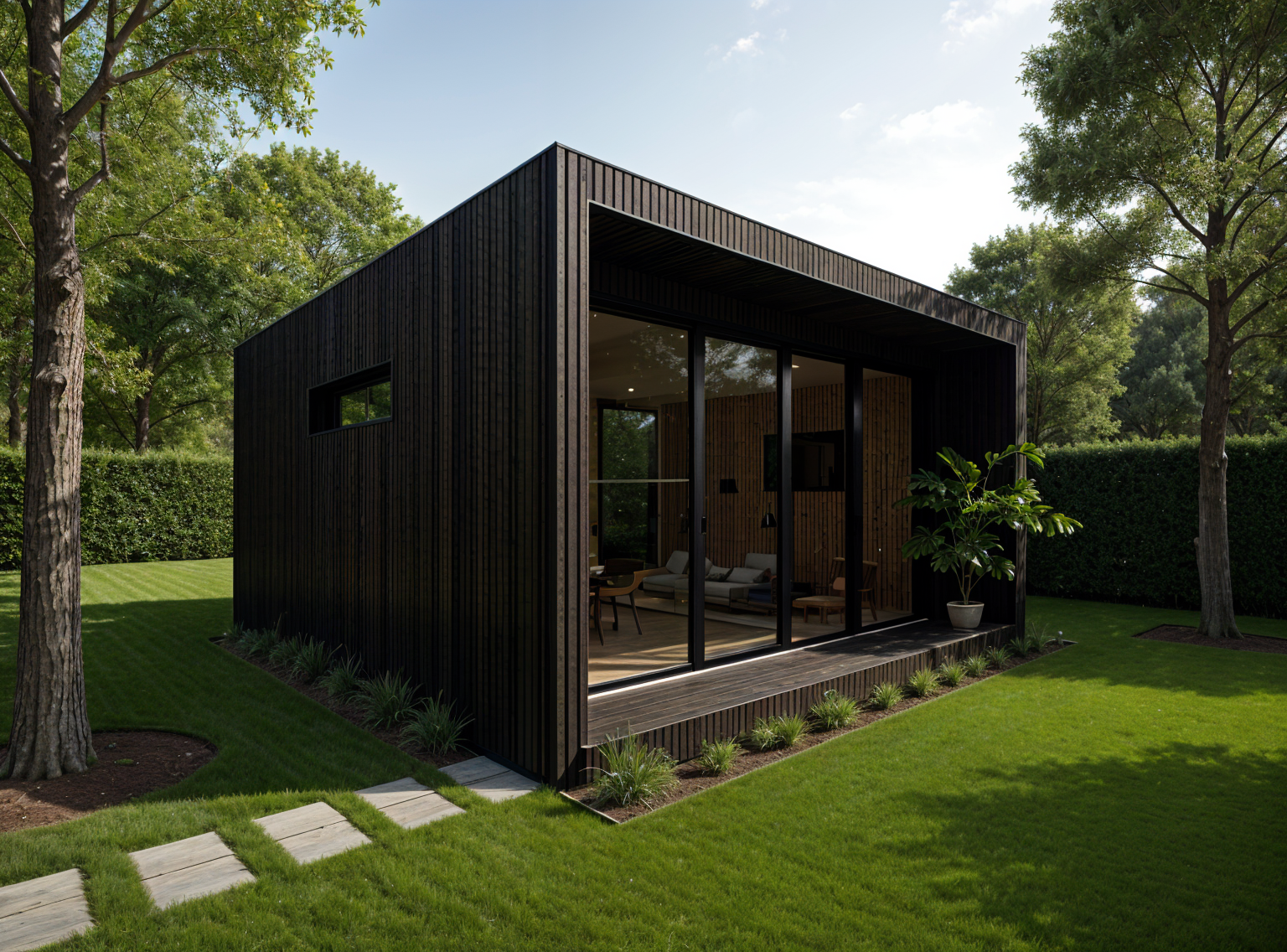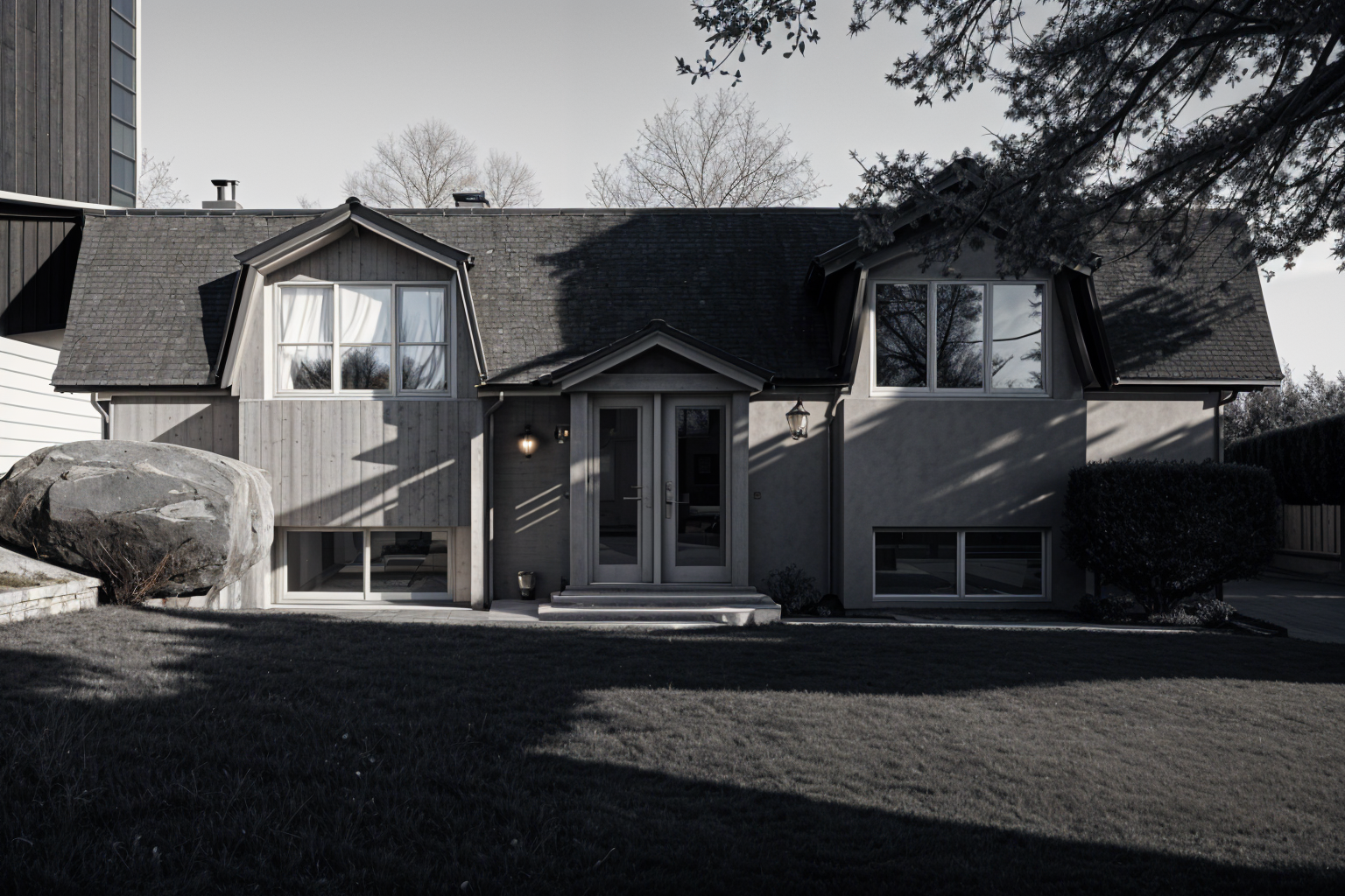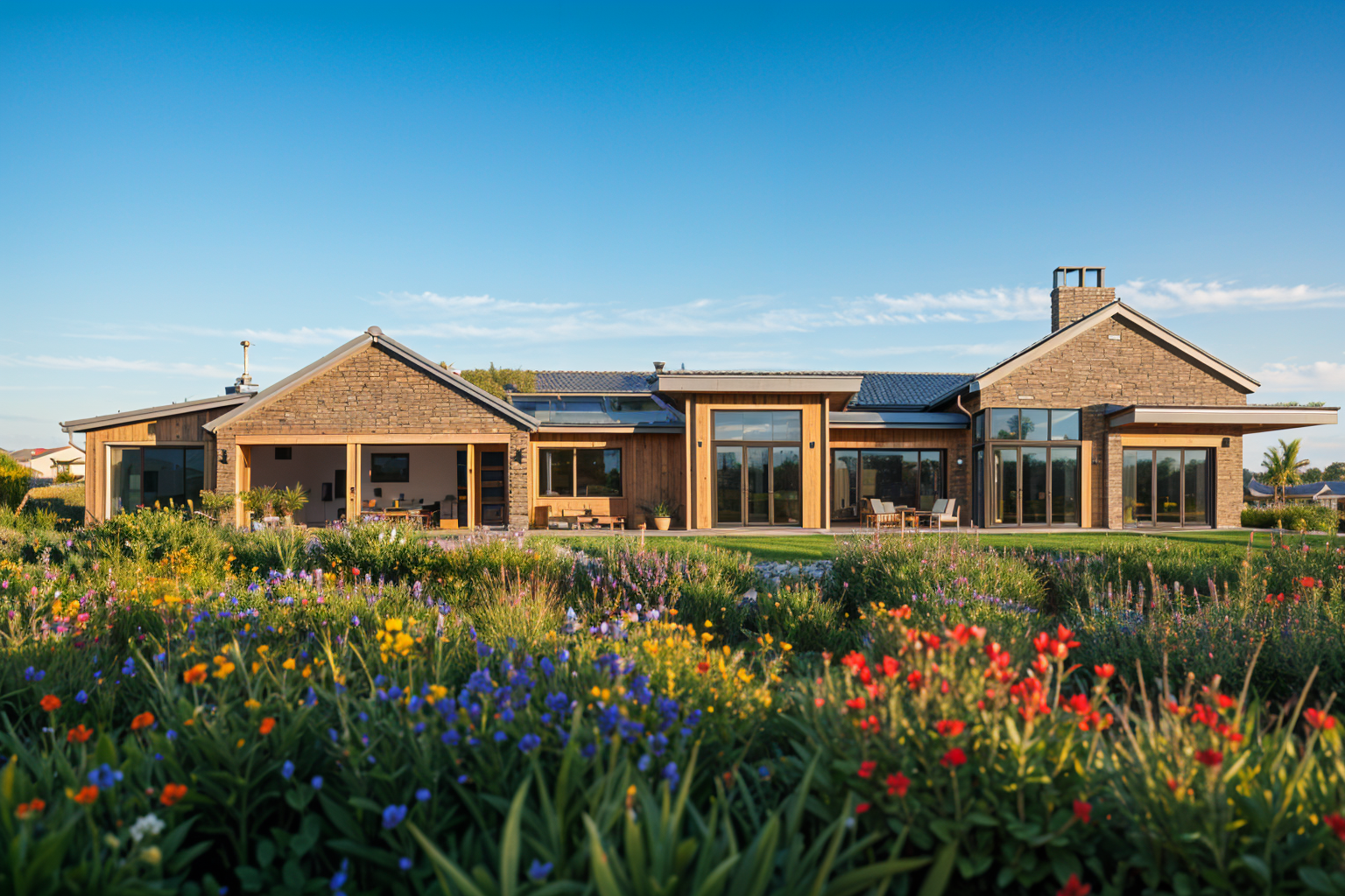 sustainable design exterior shot make the garage stone veneer with black doors with glass windows in them architecture