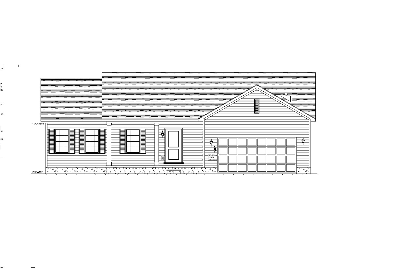 make as photorealistic as possible while keeping textures the same as selection professional landscaping in a lightly wooded scene with good lighting light grey horizontal siding dark roof white windows solid black front door white garage door no stone