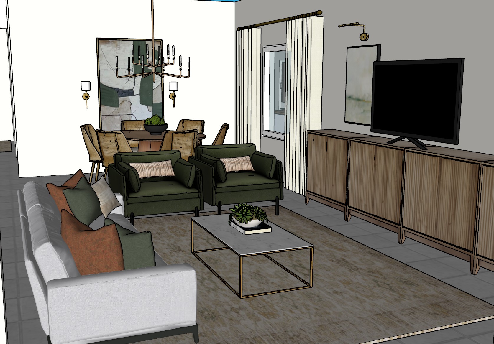 change the flooring to light gray 12 x24 tile and lighten the wood color of the tv console