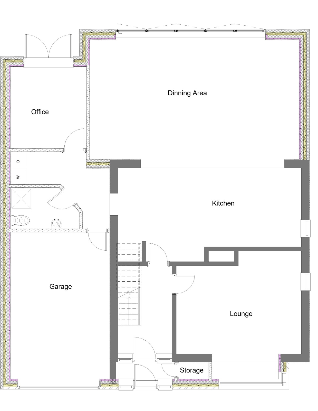 convert this floor plan into a realistic isometric 3d view of a full house show the space from an elevated angle with furniture walls and details visible warm contemporary living room interior based on the uploaded floor plan light oak flooring soft white walls large light grey sofa beige textured rug modern fireplace with white stone surround black metal chandelier exposed ceiling beams large windows bringing in natural daylight minimalist modern furniture cozy high end residential interior open plan dining area connected to the kitchen with a large wooden dining table modern upholstered chairs pendant lighting above the table warm oak flooring and neutral tones use the same furniture as shows on the plan do not change the orientation of the floorplan