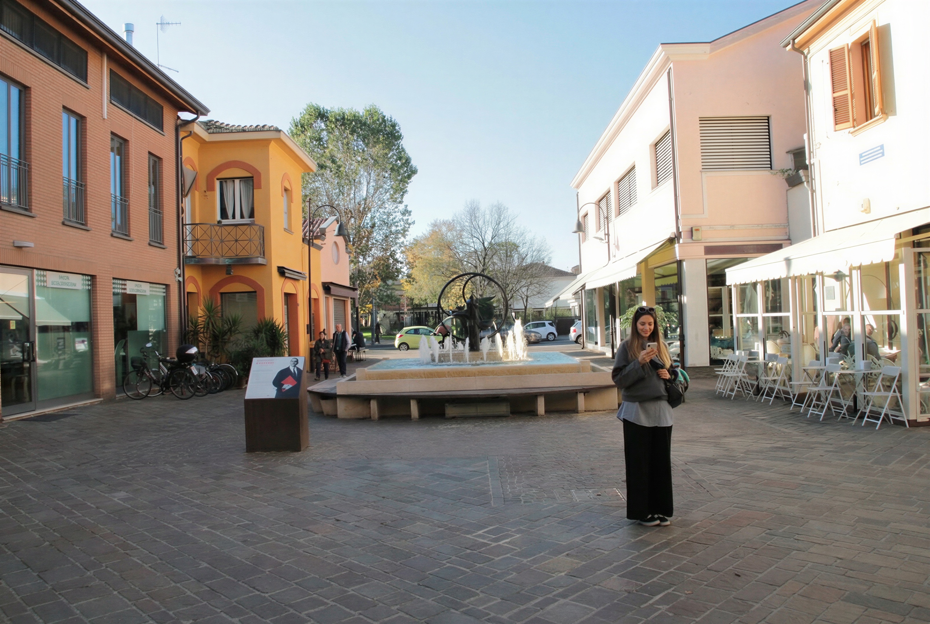 crea una copertura della piazza con teli retrattili di colore ruggine traforati con disegni floreali