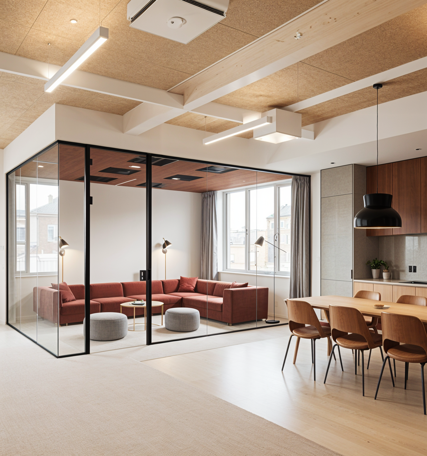 modernist exterior shot ultra realistic architectural rendering of a luxury mixed use shopping mall in iraq the building features a contemporary design with fa ade clad in premium natural stone tiles warm beige and cream tones and high end decorative paving blocks for the pedestrian areas the rooftop includes a lush green landscaped terrace with trees shrubs and seating areas elegant lighting clear sky realistic shadows high resolution 8k render v ray style cinematic composition architecture
