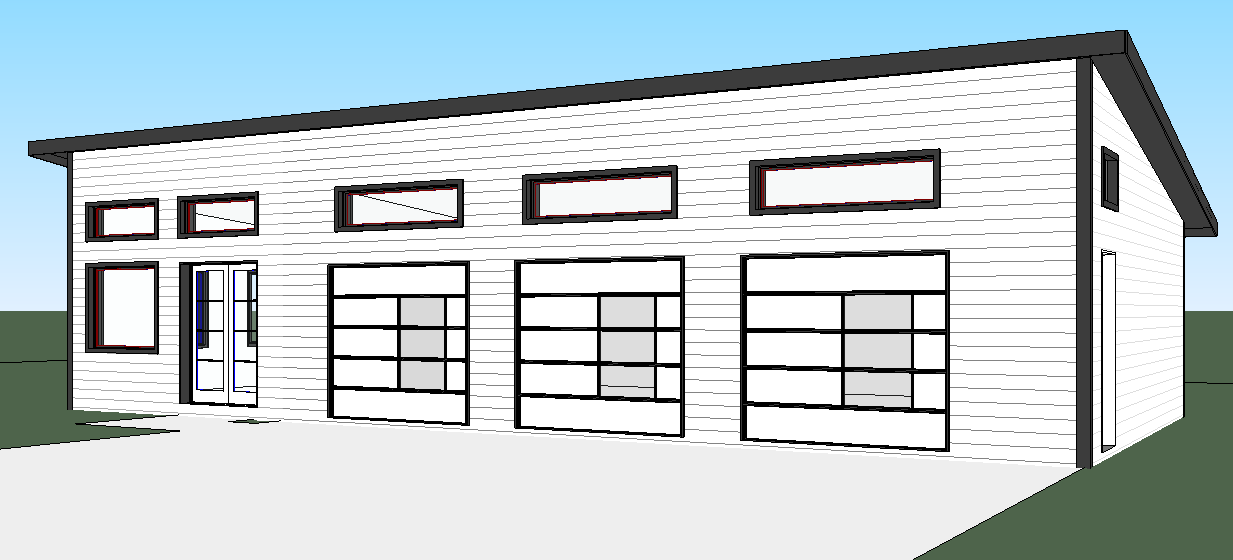 add natural lighting make look realistic add surrounding trees and landscaping the doors are white with black trim the windows have black trim