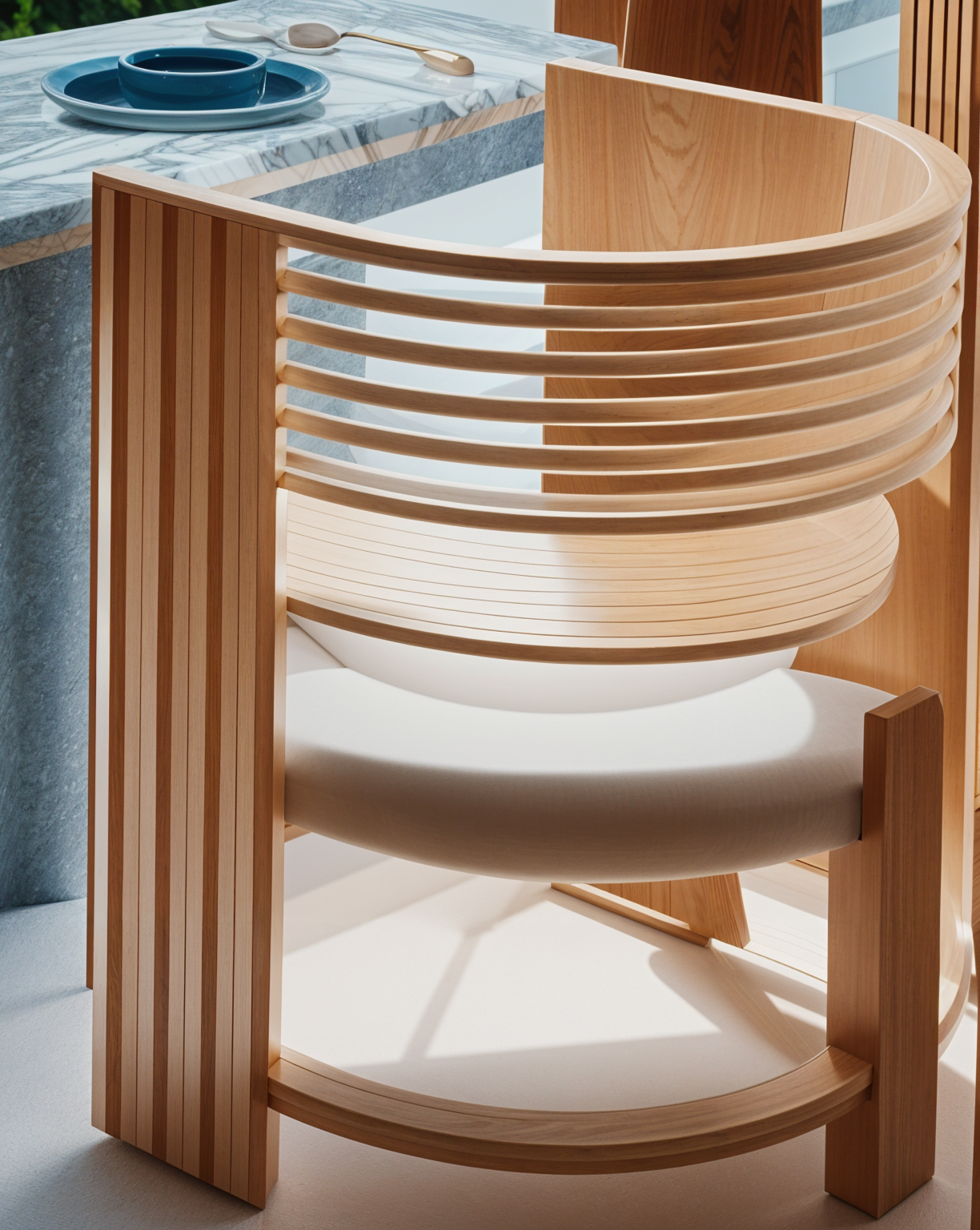 modernist random weaving design upholstered seat wooden legs architecture