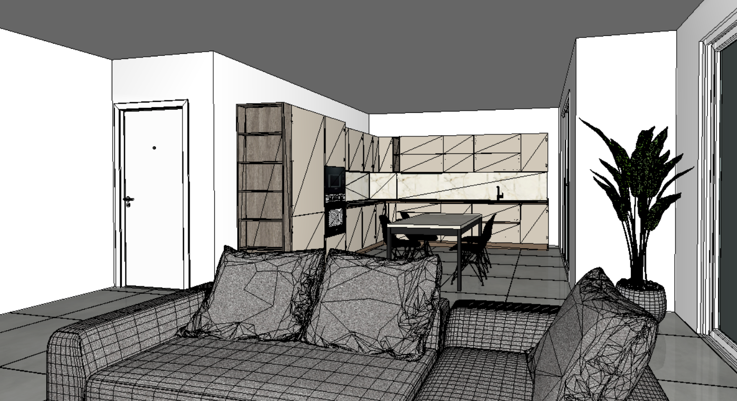 add linen curtains on the window plus daylight background put some books on the small bookshelf and set the table