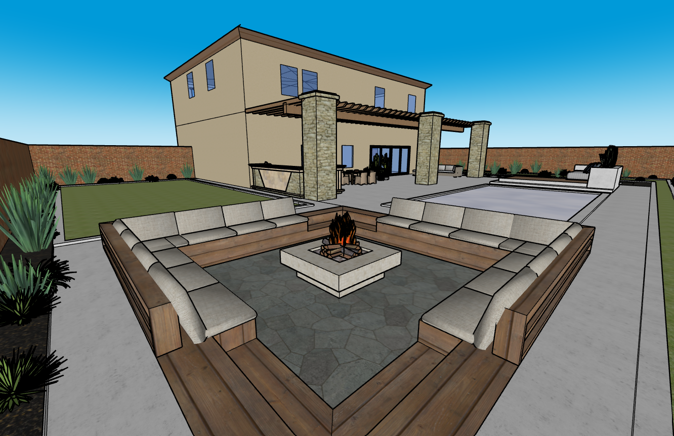 photorealistic architectural render at sunset golden hour warm sunlight coming from a low angle casting long soft shadows and creating a warm glow on the building facade exterior lighting fixtures are turned on and softly illuminating the space including wall sconces pathway lights and ambient lighting the sky is a soft gradient of orange pink and light purple typical of sunset enhance the realism of the materials only improve texture detail reflections roughness and depth for surfaces like wood concrete stone metal and glass subtle reflections in glass and slight imperfections in materials for realism do not change the architecture layout geometry furniture placement landscaping or design elements only enhance materials lighting and atmosphere ultra realistic cinematic lighting physically accurate materials global illumination ray traced reflections soft ambient shadows high dynamic range architectural photography style 8k quality