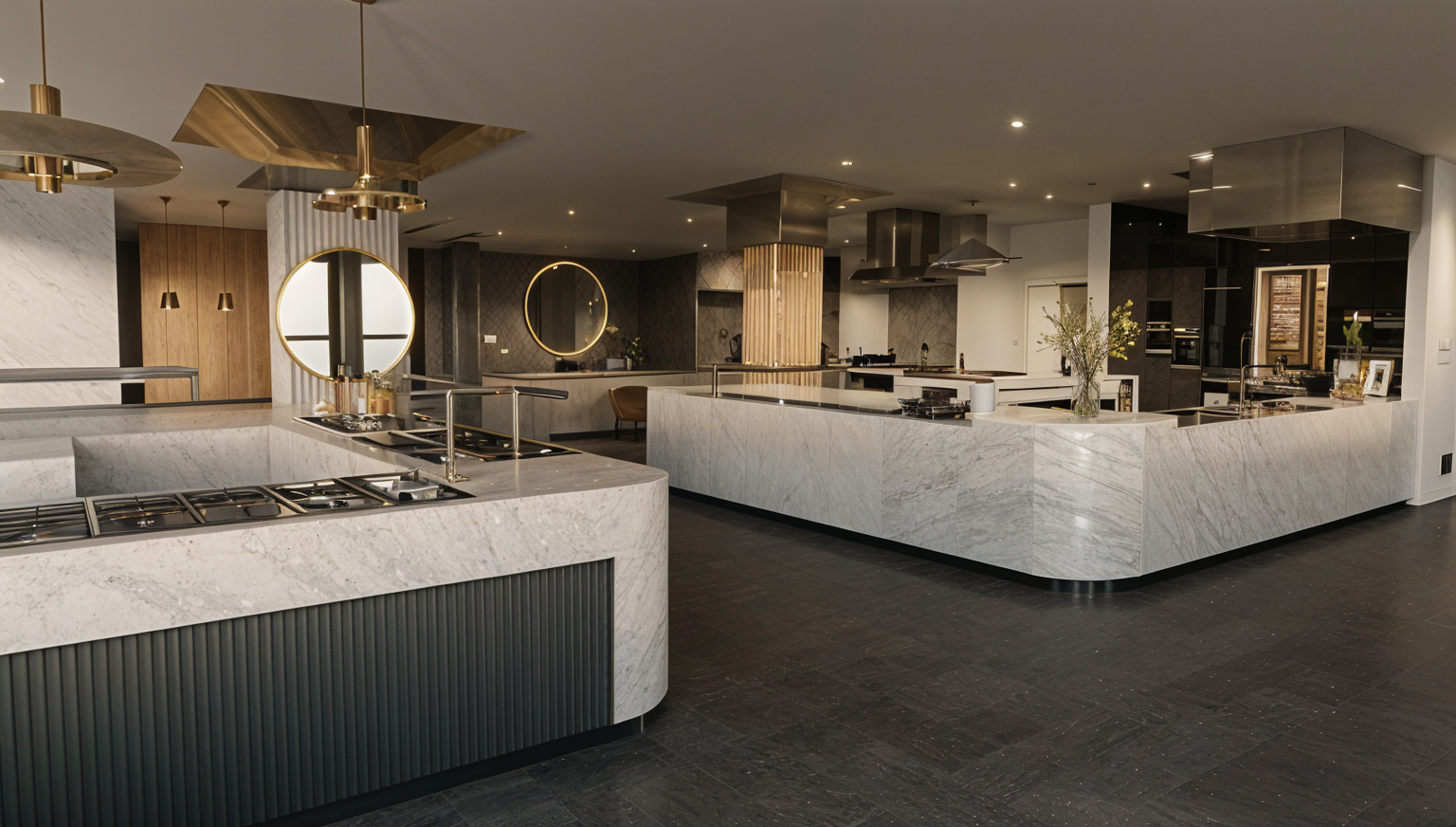 modernist exterior shot a modern golf clubhouse with large glass windows and stone facades featuring a sophisticated structure with wooden beams the setting includes a serene mountainous backdrop with light brown and green hues lush green trees and bushes in the foreground and a clear blue sky with scattered clouds vehicles and golf carts are parked nearby providing a contemporary and lively atmosphere the overall ambiance should be vibrant and inviting highlighting the natural beauty and modern elegance of the scene architecture