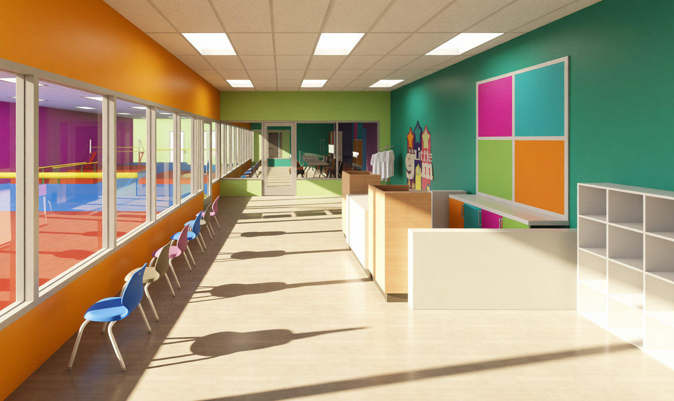 gym room looking into the gym through glass doors right wall charcoal grass cloth wallpaper left wall is wood wallpaper look brighten the gym equipment keep back wall in gym wood look