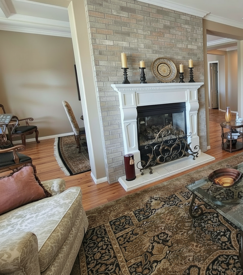 ultra high end photorealistic interior render based exactly on the provided reference image preserve 100 the original camera angle perspective field of view proportions room geometry and all furniture placement no changes allowed no additions no removals materials physically accurate light wooden floor with beige area rug approx 2 cm cut pile soft dense fibers subtle irregularity coffee table american walnut base natural grain satin finish marble top soft veining micro roughness variation tv cabinet and wall cabinets american walnut corpus white semi gloss laminate doors controlled reflections no overexposure walls beige vinyl wallpaper with fine textile texture matte diffuse response acoustic panels left wall corner right wall vertical walnut slats on black background deep shadow gaps and strong depth door frame and skirting olive matte lacquer finish ceiling white suspended ceiling with 10 cm recessed gap and integrated led strip soft indirect light sofa grey fabric upholstery with visible fibers and natural folds armchair matte fabric soft shading plant pot white matte ceramic slightly rough surface plant natural green with subtle translucency lighting daylight curtain diffusion primary light source daylight from right side through two windows hidden behind sheer curtains light is soft diffused evenly spread no hard sunlight beams smooth gradient from window side into interior neutral white balance no yellow or blue tint led strip in ceiling gap very subtle indirect soft wall wash not dominant global illumination physically accurate global illumination soft contact shadows under all furniture natural light bounce from floor walls and furniture balanced exposure no burned whites no flat shadows ambient occlusion in corners joints and material transitions ultra realism system micro detail on all materials walnut grain depth and variation marble reflection breakup fabric fibers sofa rug subtle edge imperfections very realistic minimal slight film grain 1 1 5 to remove digital perfection microcontrast enhancement not global contrast soft highlight roll off shadow depth boost strong but soft contact shadows under objects increased depth in acoustic slat gaps furniture floor contact wall transitions foreground slightly richer background softly lighter clear spatial layering foreground midground background reflection roughness control all reflections must be physically correct and slightly imperfect no mirror like surfaces unless natural marble soft diffused reflections laminate controlled semi gloss no clipping ceramic matte low reflectivity micro roughness variation across surfaces exposure color control no overexposed whites especially laminate and ceiling preserve full detail in highlights neutral color grading no artificial saturation balanced contrast with natural look camera original camera preserved exactly eye level perspective 35mm lens equivalent no distortion or framing changes output ultra high resolution 8k clean sharp photorealistic premium luxury architectural visualization strict negative rules do not change layout geometry or proportions do not change materials or colors do not add or remove objects no stylization or artistic interpretation no cgi look no yellow orange tint no over sharpening no unrealistic reflections