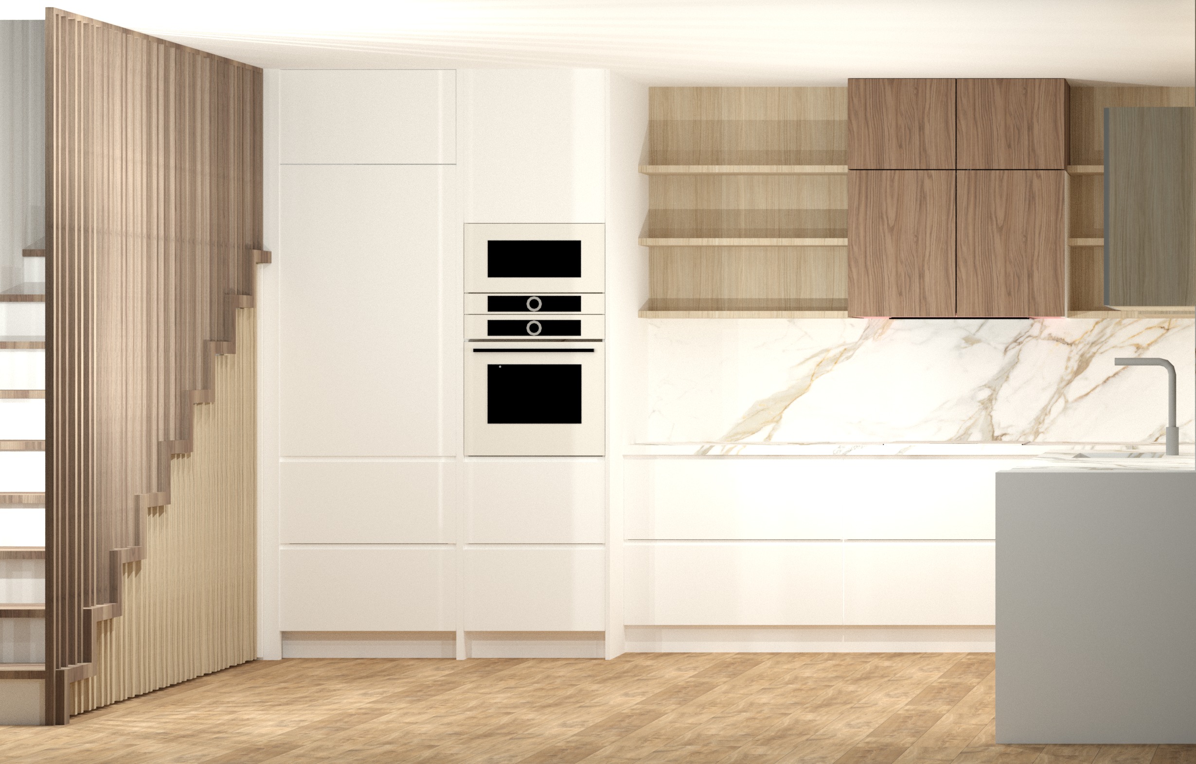 mantener colores con precision mantener geometria con precision a adir luz led en los estantes encima de la encimera a adir decoracion de cocina en los estantes de madera encima de la encimera