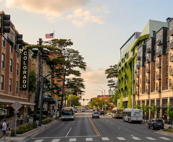 render with section parking structure on right backgound building reveal parking structure behind retail