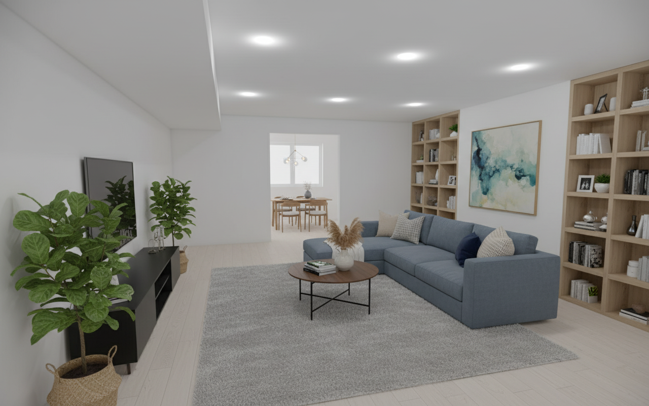 le corbusier exterior shot render a modern minimalist tower with clean lines and a sleek design use soft white for the overall structure accented with light gray shades around the windows and panels create a serene atmosphere with a clear blue sky and gentle sunlight casting subtle shadows add hints of greenery at the base and balconies to bring a touch of nature and vibrant life to the scene architecture