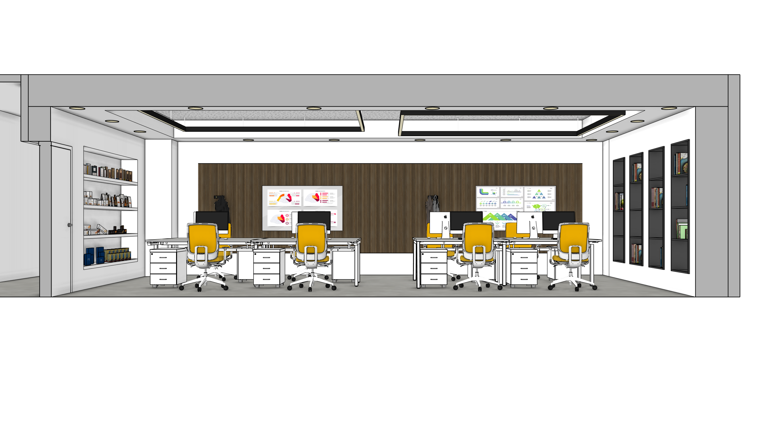 las estanter as de izquierda y derecha tienen luz en las baldas las im genes con los gr ficos son pantallas