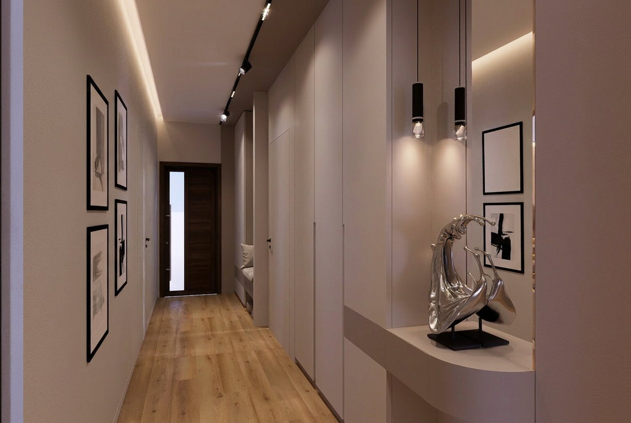 a modern house retain the exact structure colors and window arrangement rooflines siding foundation height railings wood stain colors and proportions exactly as shown in the reference image integrate into the terrain there are very few trees of mixed hardwoods that are mostly on in the distance of the image add cooler diffused afternoon sunlight subtle dappled highlights across the siding and grass create ultra realistic lighting crisp shadows detailed textures in the siding and glass reflections and an overcast sky show only a few lights visible inside render in hyper photo realistic architectural visualization quality 8k resolution make it the spring season after a rainstorm add realistic landscape add a large pasture behind the structure with white 3 rail farm fence