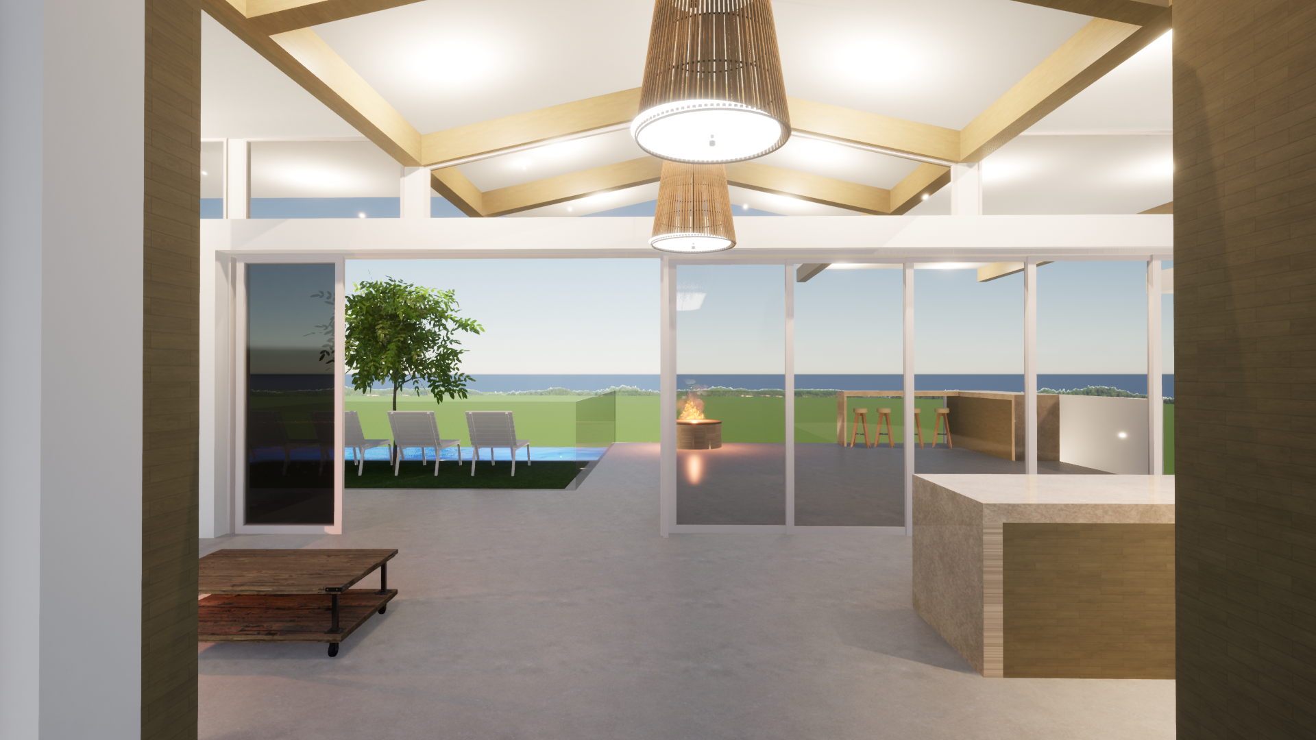 make photo realistic wth realistic textures sheer curtains and afternoon sky