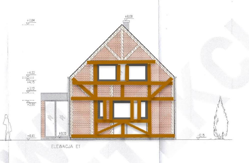 br zowe linie pokazuj podzia muru pruskiego z belkami w kolorze bia ym jak na szczycie