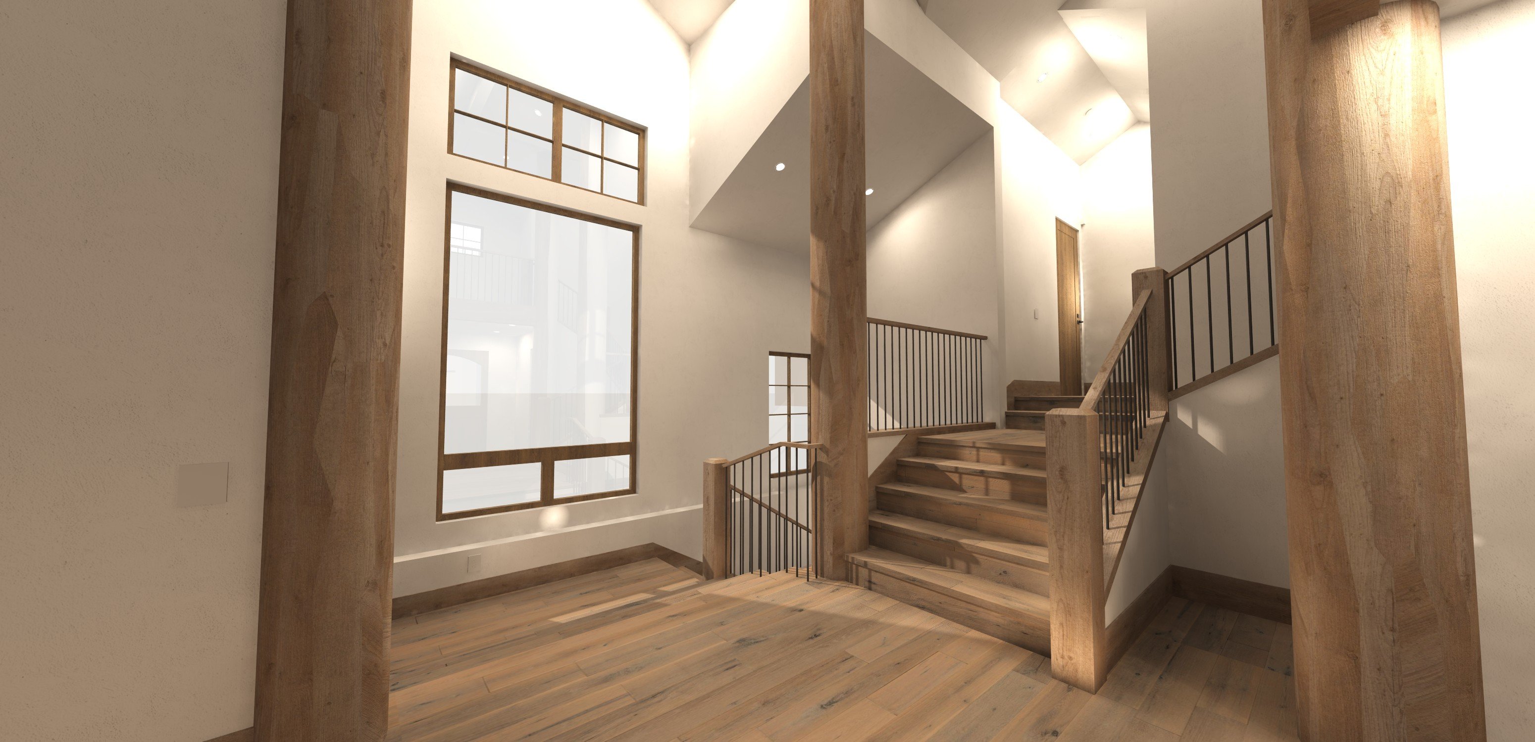 enhance this interior rendering with better realistic lighting keep the wood raw and natural and light in color