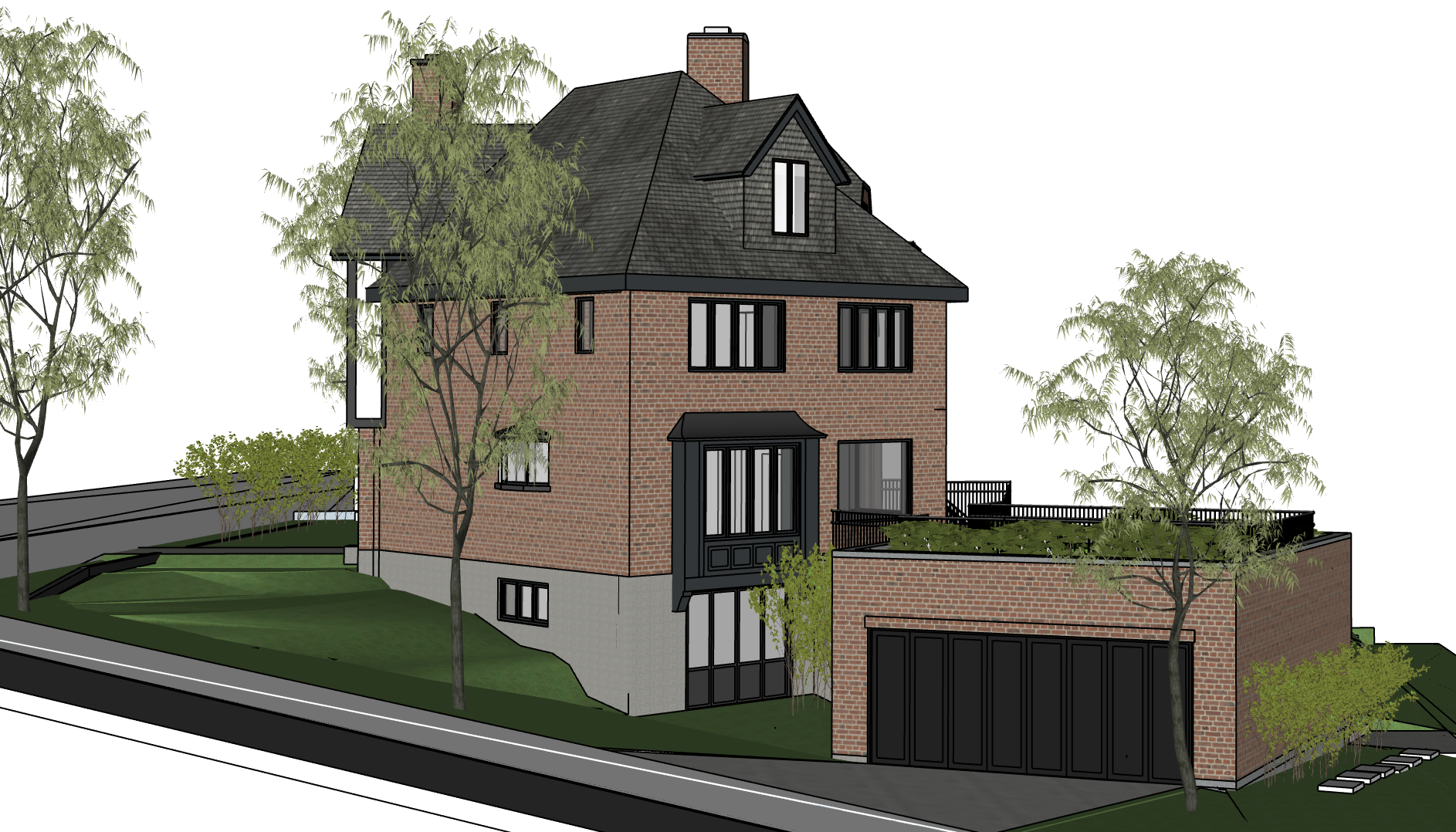 create a presentation sketch napkin style image keep all colours is same tones as in image provided keep all proportions the same keep dormer face in same tones as roof
