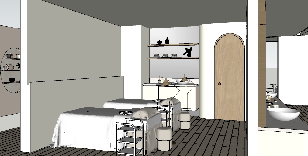 create ultra realistic images without changing any structure shape design or materials do not resize jpegs beige wood vinyl flooring plain off white walls off white ceiling white bed add indirect light and in wall is mirror white marble to table
