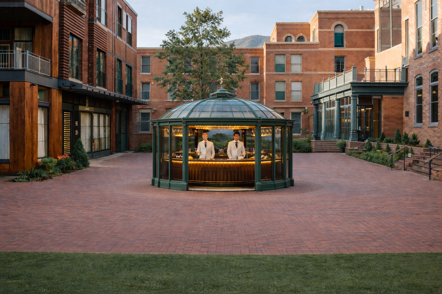 add these chairs and lounges in the foreground with wrought iron tables and the same with white table clothes in the background behind the pavillion