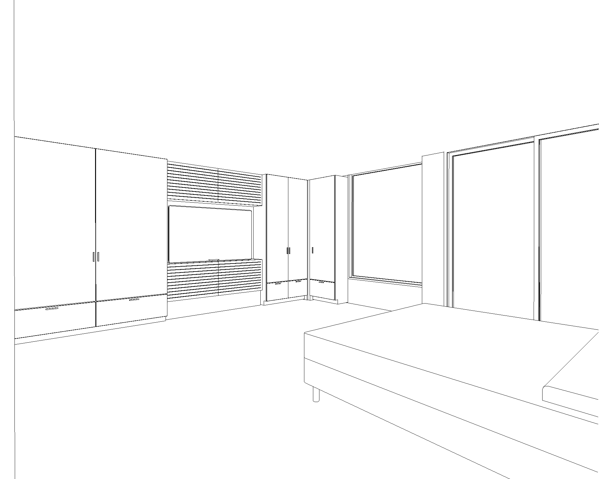 contemporary interior shot a master bedroom with high end modern wardrobes along the back wall with a space for a tv architecture