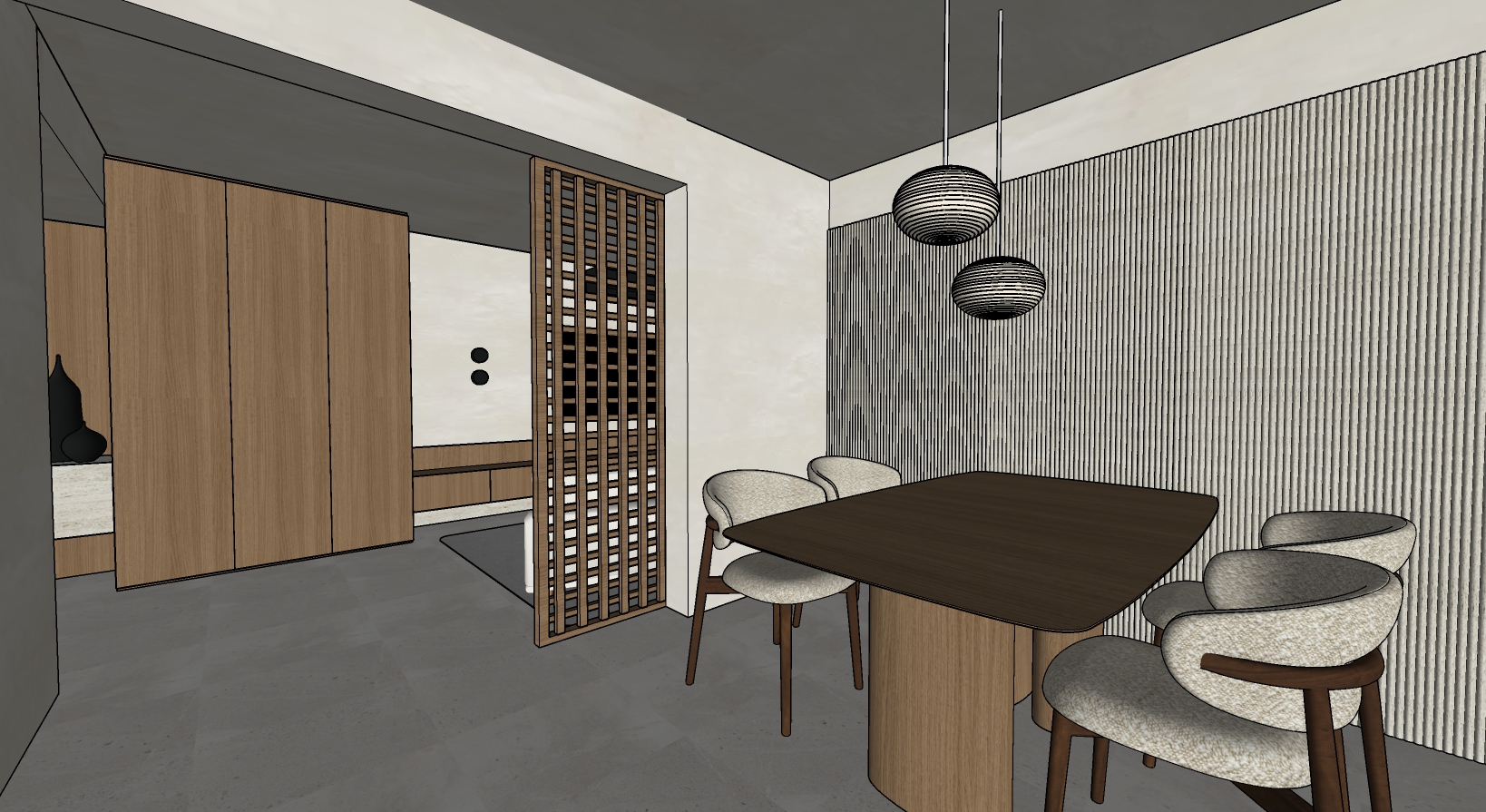 el varillado detras de la mesa es de piedra y las demas paredes son estucadas