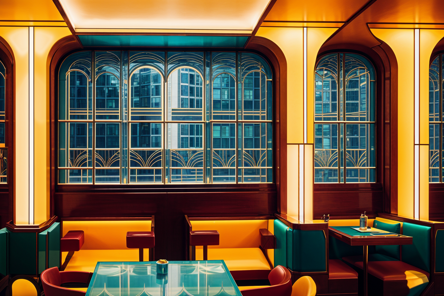 art deco interior shot make a restaurant with the colors of the promt architecture