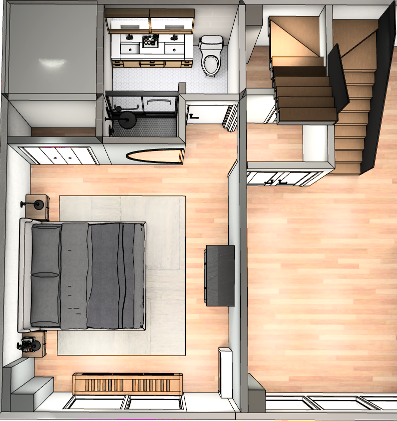 put white linens on the king bed illuminate the house with a lot of natural light from the big windows