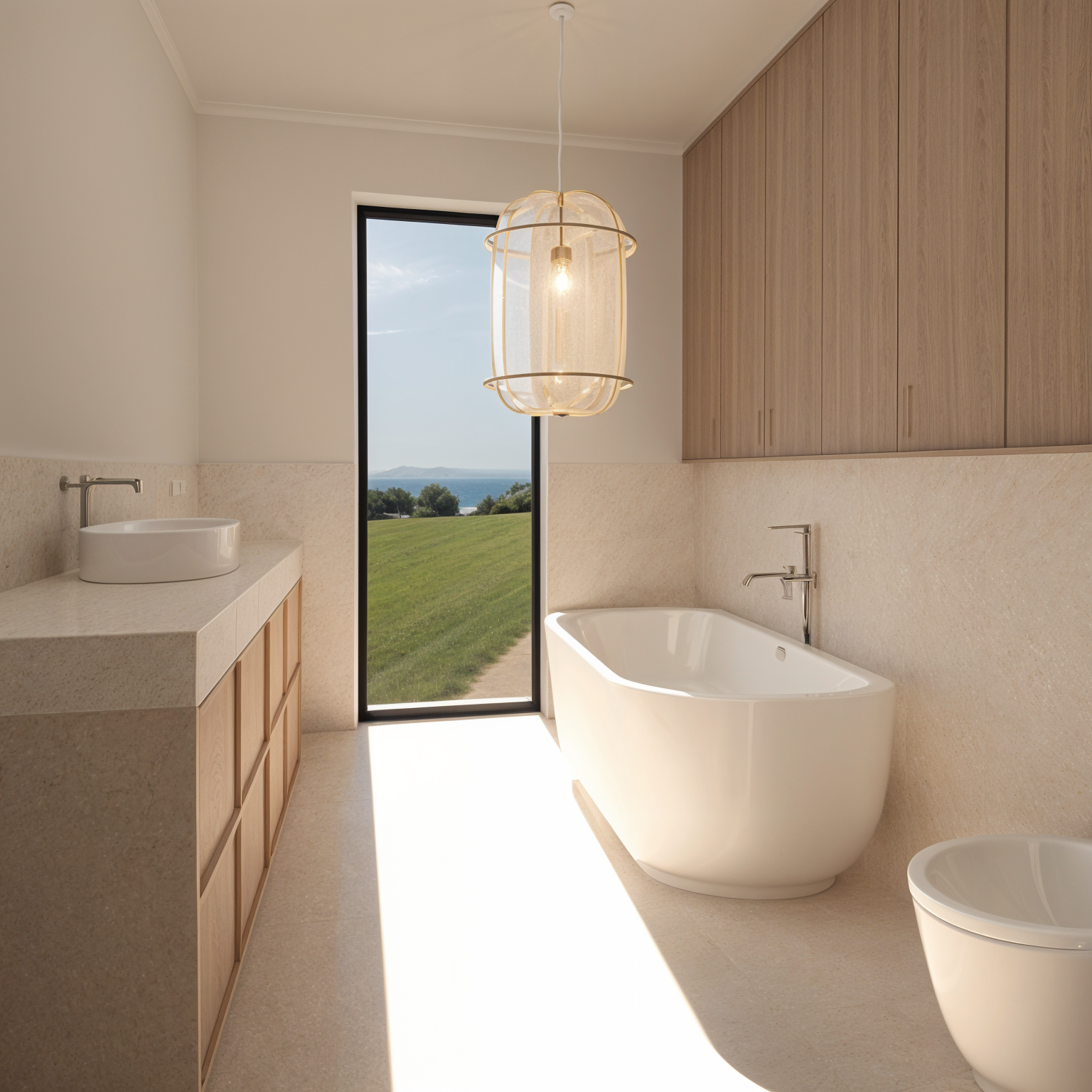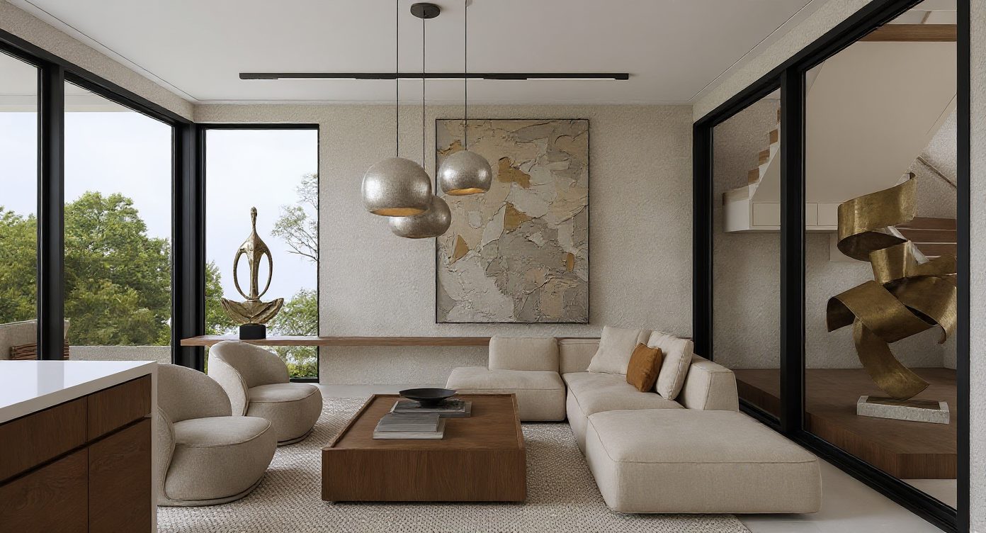 enhance realism across the entire scene while keeping the exact camera building proportions materials and layout unchanged improve lighting accuracy soft shadows and material definition make surfaces like concrete brick glass metal and vegetation appear more tactile and detailed refined textures subtle wear and believable edges increase clarity remove haze or blur and sharpen mid ground and foreground elements slightly improve vegetation realism with more natural leaf variation subtle color tones and slight irregularity without adding new plants or modifying structure keep sky soft overcast lightly luminous no dramatic clouds keep the building exactly as modeled but improve quality depth and photographic realism