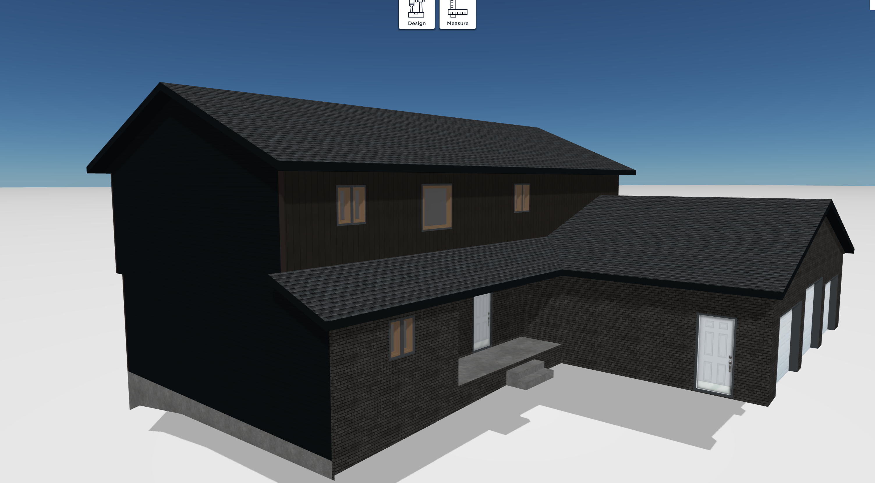 make the side gabel wall united states seamless steel siding in a horizontal 6 profile in black color make the front upper floor siding united states seamless steel siding vertical 6 board and batten profile in black keep the colors and shape of the house exactly the same put a wooded backround on the image make it photo realistic make the two entry doors a light cedar color