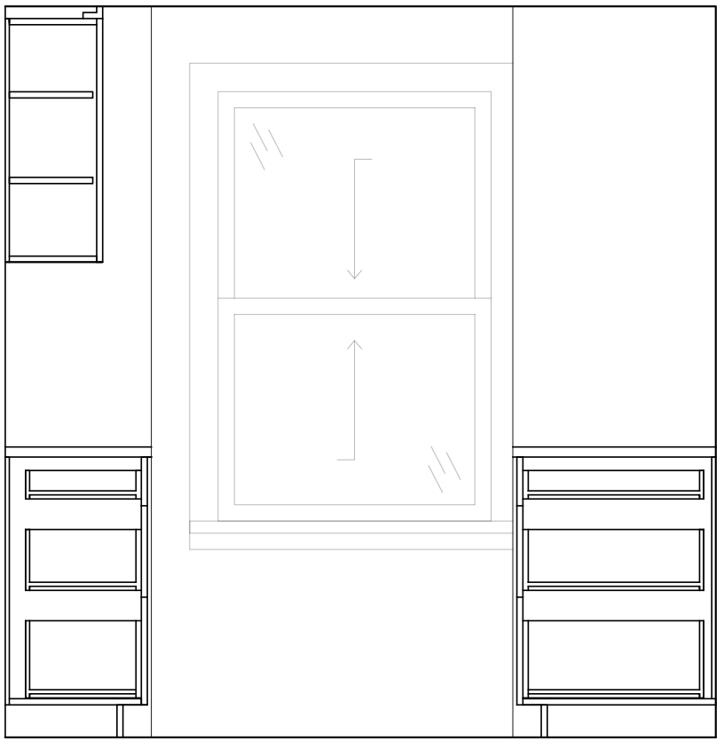 render this elevation cabinetry is dark green stained with grain showing floors are maple walls are soft white