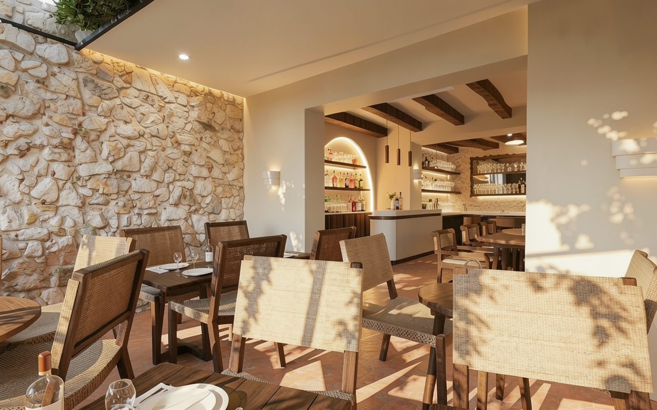 tout garder absolument identique juste rajouter une led qui suit que et uniquement l arche derri re le bar et sur chaque tag re rajouter aussi des verres cocktails uniquement sur ces tag res dans cette arche seulement et rendre les poutres en bois au plafond r alistes c est tout