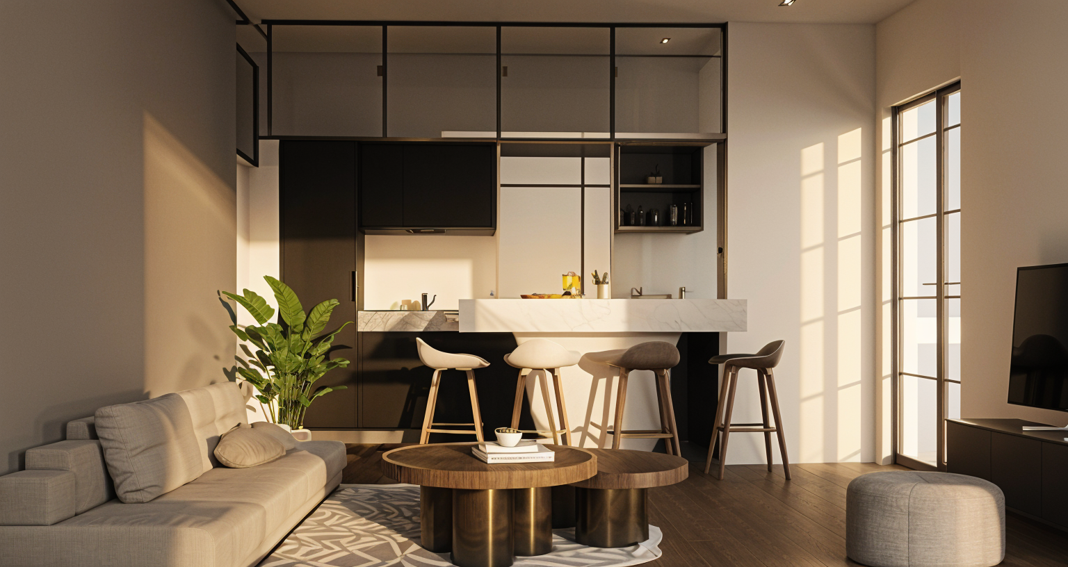exterior shot render a modern office building with reflective glass windows under a vibrant blue sky the building exterior should be regenerate of the second image using perforated panels in front of the columns and the parapet above only add lighting behind the perforated panels add landscaping around building surrounding it with greenery featured of lush green grass and autumnal trees with red and orange leaves the scene conveys a clear sunny atmosphere with bright light casting soft shadows across the black asphalt parking area add pedestrian and few cars in parking lot