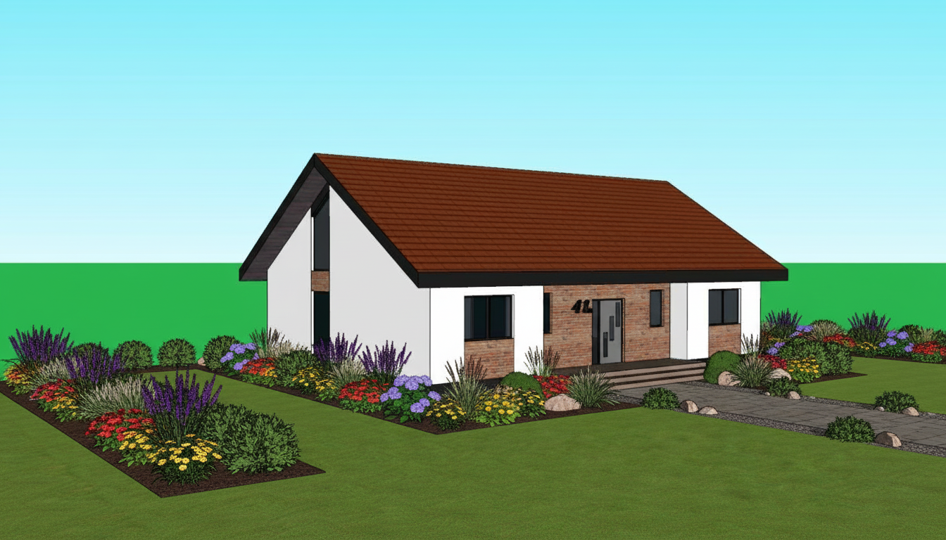 close up shot nie zmieniaj proporcji kszta tu ani kadru budynku uk ad bry y elewacji okien i detali architektonicznych musi pozosta identyczny jak w projekcie wykonaj ultra fotorealistyczn wizualizacj architektoniczn w jako ci zdj cia z magazynu o architekturze premium styl fotograficzny profesjonalna fotografia architektury obiektyw 35 mm tilt shift iso 100 przys ona f 8 pe na g bia ostro ci neutralna ekspozycja balans bieli naturalny kolory realistyczne i filmowe wiat o i atmosfera poranek lub p ne popo udnie z ota godzina ciep e mi kkie wiat o dzienne 3700 4200 k d ugie realistyczne cienie podkre laj ce rytm pionowych lameli subtelna mgie ka powietrzna haze i lekka dyfrakcja wiat a brak prze wietle zr wnowa ony kontrast delikatne odbicia w szybach i b yszcz cych powierzchniach materia y i detale autentyczne materia y tynk mineralny o mikrostrukturze drewno elewacyjne o r norodnym us ojeniu i odcieniach szk o z realistycznymi odbiciami metal satynowany drobne nieregularno ci powierzchni subtelne zabrudzenia delikatne cienie kraw dziowe i zr nicowanie koloru lameli widoczne po czenia konstrukcyjne lekka patyna na metalu i szkleniach otoczenie i kontekst naturalna ziele trawniki krzewy byliny i drzewa w tle z realistyczn faktur li ci i p przezroczysto ci niskie nasadzenia przy budynku lekko wilgotna ziemia w cieniu na podje dzie kostka betonowa z realistyczn faktur mikrop kni cia r nice odcieni delikatne odbicia subtelne o wietlenie led w ogrodzie i pod lamelami w dalszym tle dyskretne sylwetki ludzi zaparkowany samoch d cie ruchu lekko rozmyty by zachowa fokus na budynku ton i kolorystyka styl filmowy zr wnowa ony balans ciep ych i ch odnych ton w teal orange delikatne refleksy s oneczne na kraw dziach lameli subtelne odbicie nieba i zieleni w oknach ton zdj cia spokojny naturalny przyjemny w odbiorze jak w fotografii architektonicznej z magazyn w typu dezeen lub archdaily parametry techniczne ultra wysoka rozdzielczo 8k lub wi cej realistyczny grain fotograficzny brak przerysowa efektu hdr ani sztucznego nasycenia ca o powinna wygl da jak rzeczywiste zdj cie wykonane profesjonalnym aparatem architektonicznym architecture