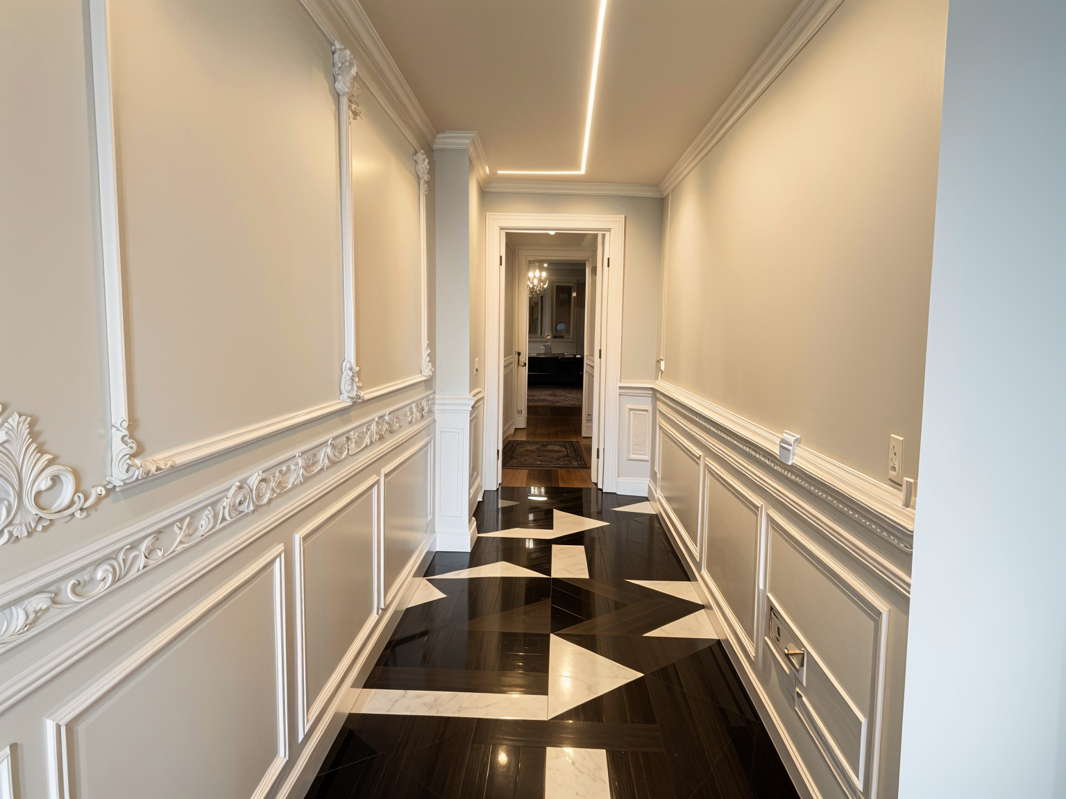 transform the provided interior image into a high end photorealistic render with soft glowing highlights and relaxed upscale energy while keeping everything exactly the same same proportions same seating same ceiling same wall finishes same materials and same spatial configuration do not move or alter any objects geometry textures colors or furniture positions all objects throughout must remain exactly in the same locations and proportions provide nyc building views from 44th floor in the middle of midtown new york city at windows only