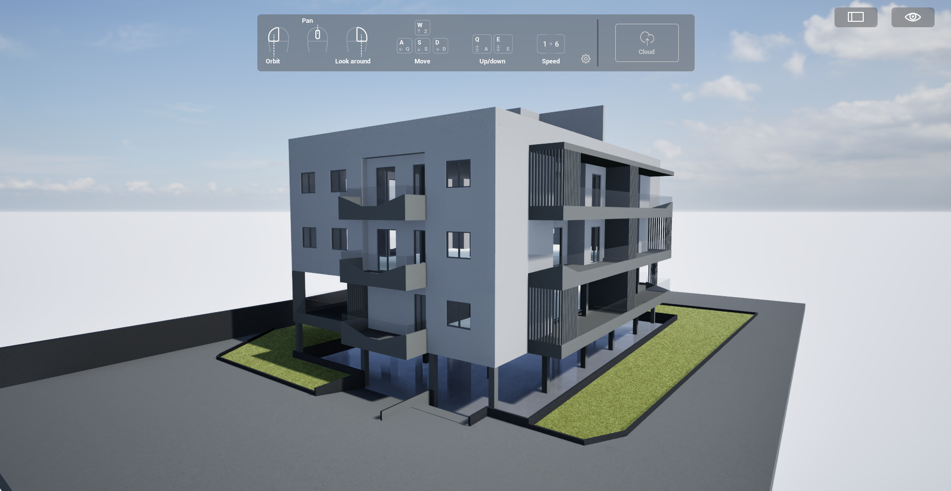 render realistico aggiungi delle piante in fiore e alberi nel giardino solo su prato verde posiziona delle macchine nel garage al piano 1 e arreda i balconi con piante fiori sedie ecc e posiziona delle persone fuori ai balconi o a piano terra in procinto per entrare puoi aggiungermi dei palazzi affianco cosi non sembra che galleggia nel vuoto