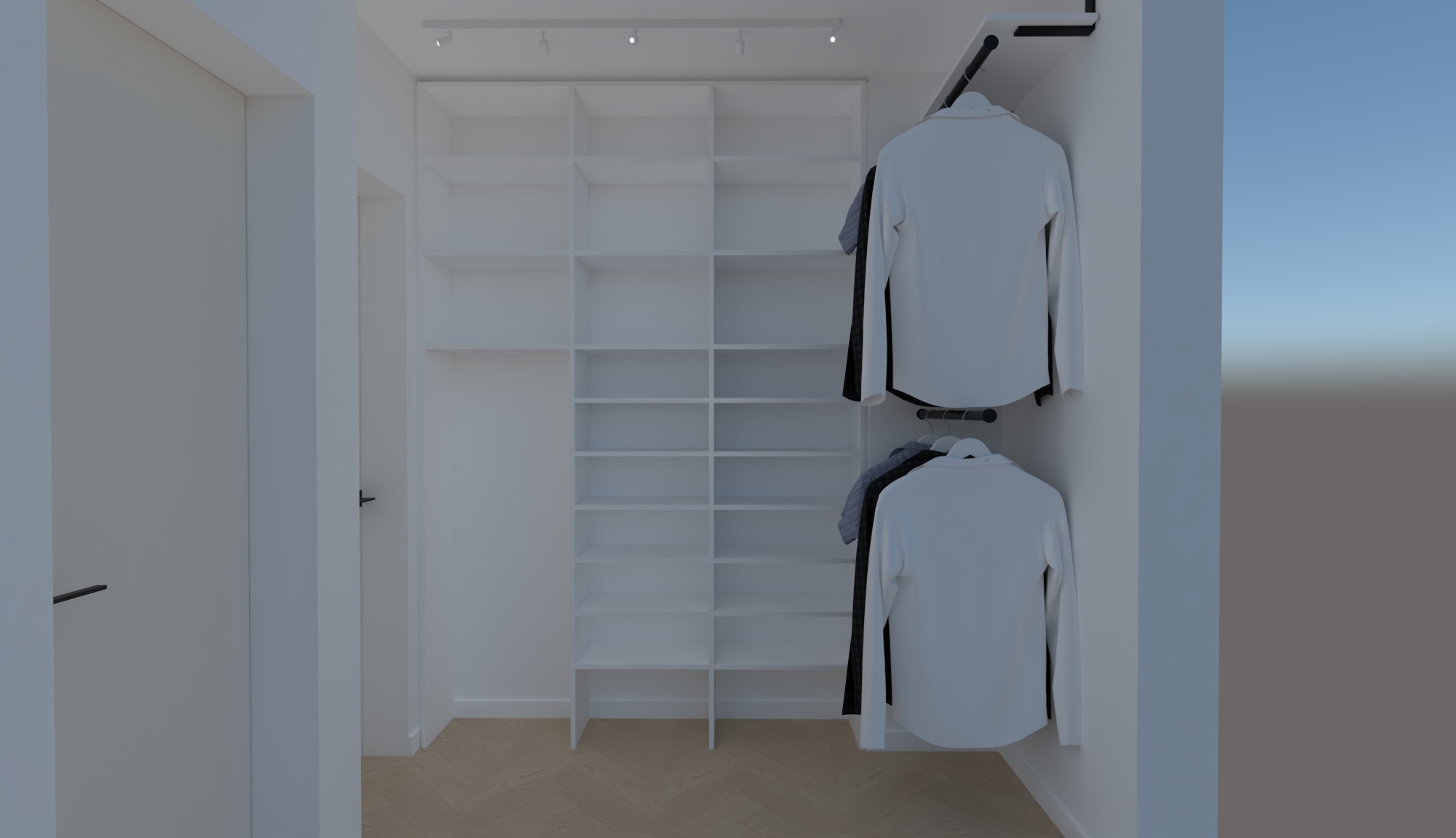 add clothing and shoes on shelves in the left side in the bottom compartment add a vertical vacuum
