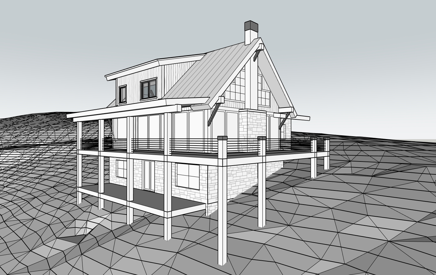 hand render mountain chateau foggy mountains