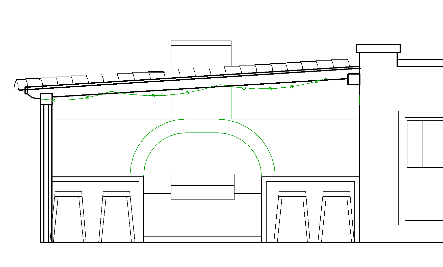 modern meditearrean outdoor kitchen with wood and red clay tile roof the stucco is white