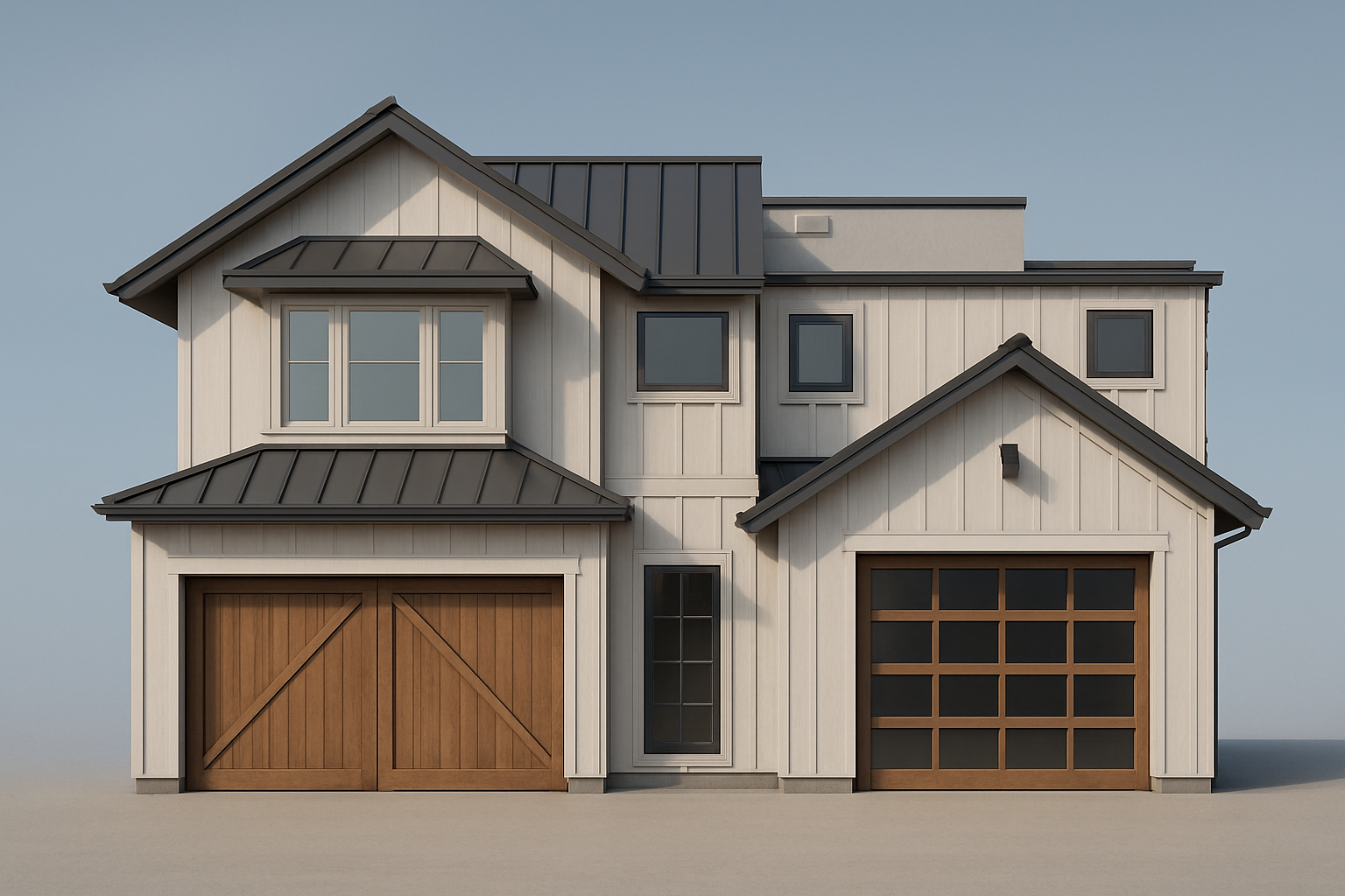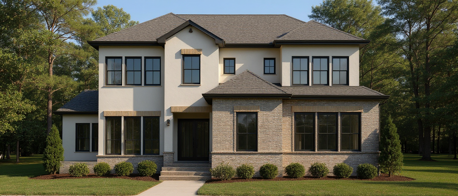 convert to a photorealistic image building with textured white plaster finish in sunny california weather